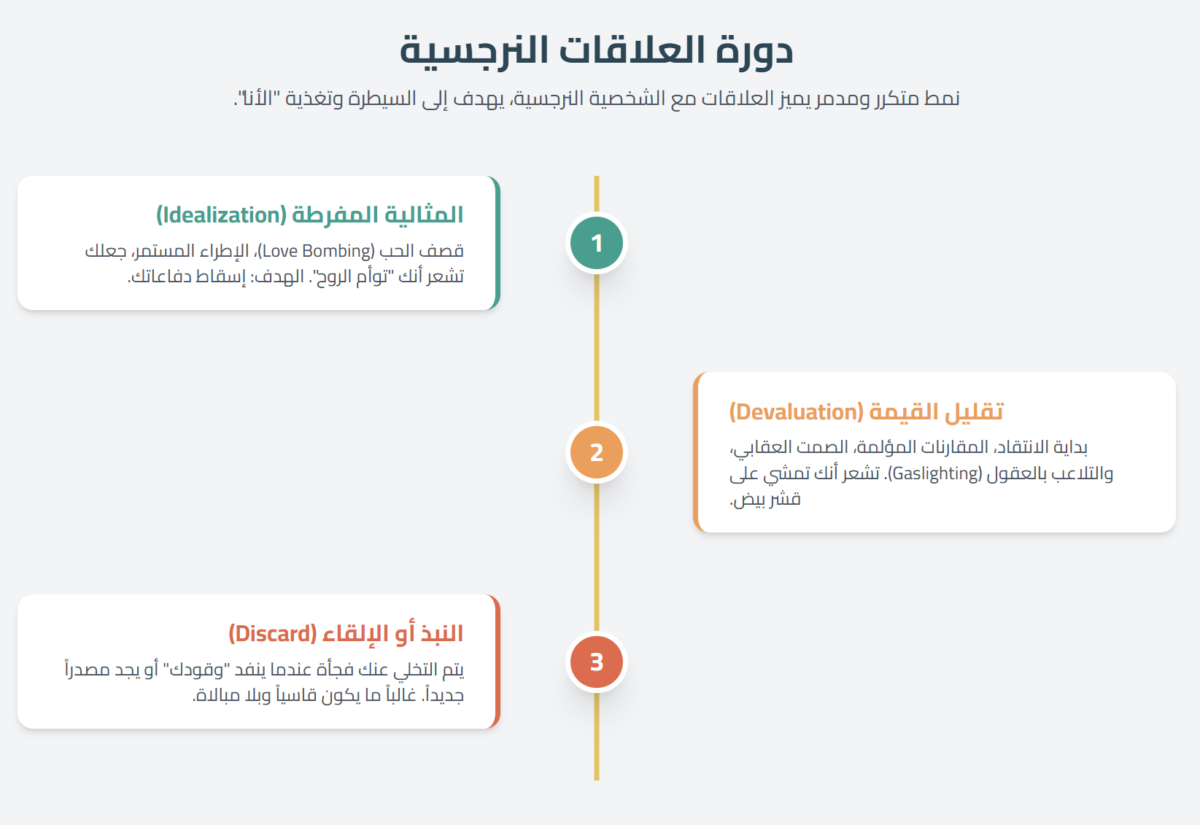 | المنطقة/العملية | الحالة عند النرجسي (NPD) | التأثير المباشر على الشريك/العلاقة |